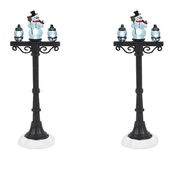 Two Brightly Painted Snowmen Sit Atop The Street Lights And Add Sparkle To Any Village Street Scene. You’Ll Want To Add Several Sets. Battery Operated (Use 2 C Batteries, Not Included) But Also Works With 56.52206 Adapter Or 56.53500 Lighting System.